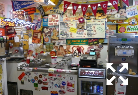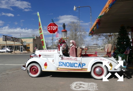Seligman AZ is probably one of our most photographed towns. The reason probably has to do with the fact that it is in the middle of nowhere. After driving miles upon miles it’s good to stop and stretch our legs. Yes, it is a cheesy tourist trap (we must love these since we find ourselves in so many of them) but today we had to eat vanilla ice cream cones dipped in chocolate and there’s no better place than the Delgadillo’s SnowCap.