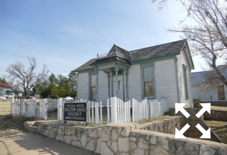 Next we visited the Dalton Gang Hideout in Meade KS. There’s a tunnel that leads from the barn to the hide out house. There’s a small museum in the barn. Further down the hill there’s the facade of a town. This is a great place for kids to play. So, we did! As for the Daltons, well, they lived by the gun and died by it too.