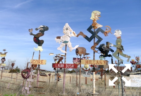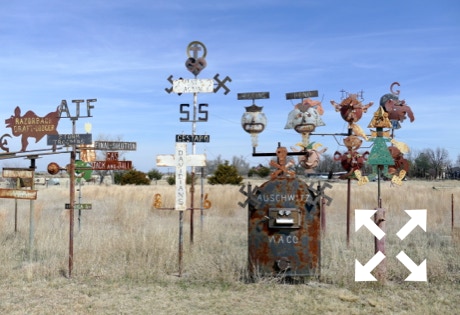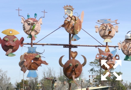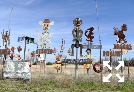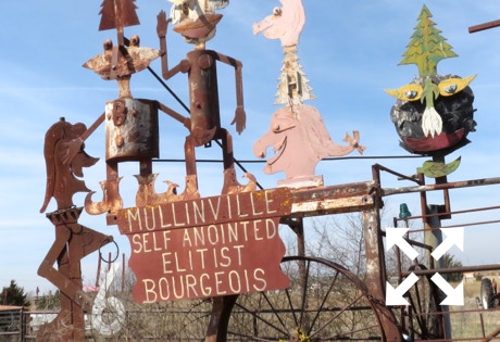 M.T. Liggett likes to work on metal as an art form. He hangs his finished products around his property. Many of them are definitely politically incorrect. He does not care. He died in 2017.