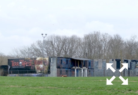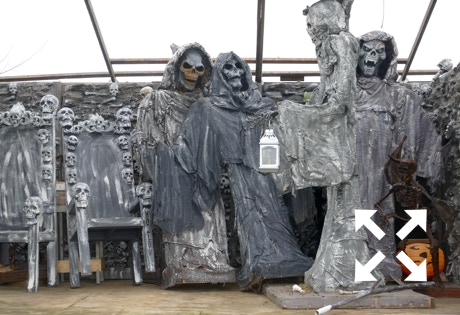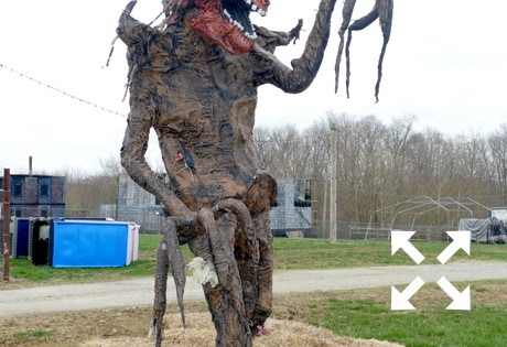 Out in the middle of nowhere, we mean this, there is a giant statue of Frankenstein’s Monster. It is in Wilmington OH and stands there to attract people into paying to go into a haunted house! There’s also a creepy, crawly giant there too. Some of the ghostly props were there to photograph. We wondered if this was a seasonal attraction or a dead one.
