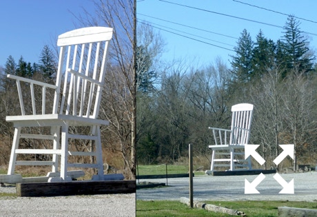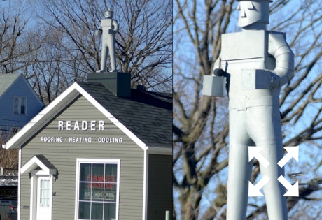Nearby we spotted a tin-man on a roof. No doubt that it’s used for advertising. The giant rocking chair of Austinburg OH is surely there to attract visitors to the local business.