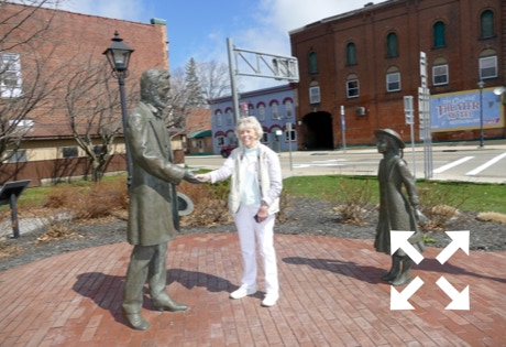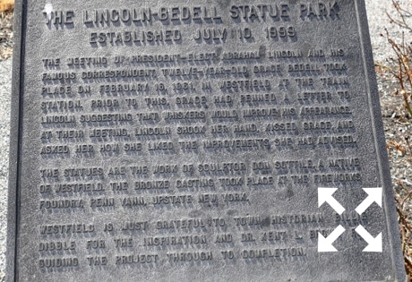 Since we saw the statue of unshaven Lincoln a couple of days ago, we decided to visit Westfield NY to see him with Grace Bedell. Here he has whiskers. Naturally, he thanked her for the idea that she suggested that he grow a beard to be elected President. Lincoln lore!