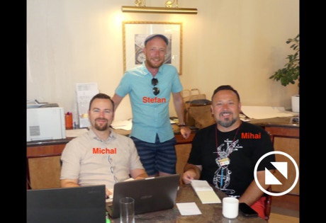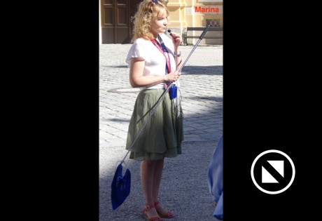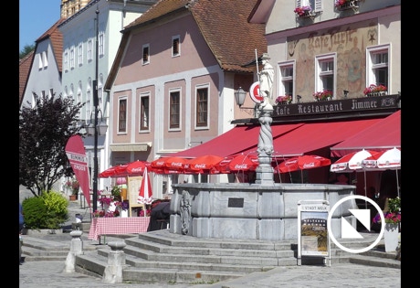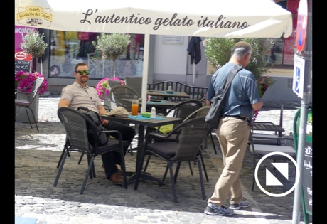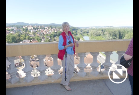 As in most of the old towns we have visited, the streets and sidewalks were cobblestones of various sizes. Ellen liked the smooth sections better. While in town we said hello to group blue leader, Michal. He was enjoying an apricot & soda smoothie. Having been Germen-ized (is that a word?), we looked for a beer.