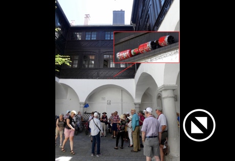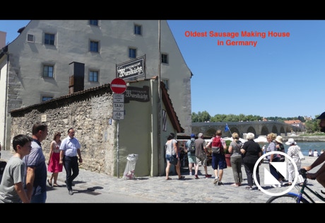 Our trip to Regensburg was delayed by three hours last night due to a lock whose door wouldn’t close behind us. So, we had a pleasant morning and lunch on the ship. Irene, our local guide, took us around town. One tower was of interest to us. It was very tall with only a winding staircase inside. Why? To show off wealth. Vanity! After a beer and pretzel we decided to see the new museum in town which had just opened on June 5th. It presented the last two-hundred years of Bavarian history.