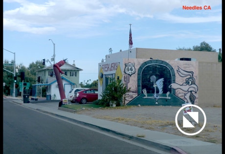 Traffic patterns work in interesting ways. For example, we had always driven by Ludlow CA and never considered stopping there. Today, we did for lunch. There’s only one restaurant in town and planted in front of it is a marker placed by the Atomic Energy Commission.