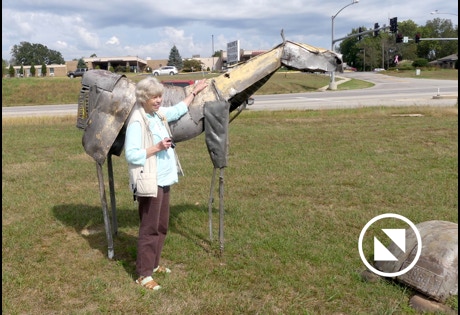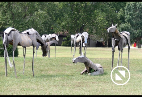 In Mountain View MO, right by the highway, there is a herd of horses made of scrap metal. They are very cute and shiny.