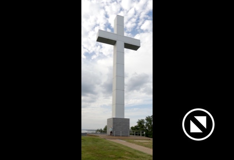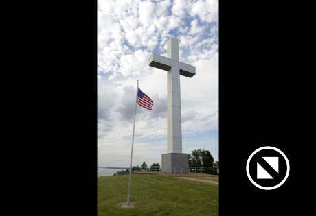 “A 90-foot-tall (27m) cross, the Fort Jefferson Memorial Cross at the Confluence, was completed in 2000 on Fort Jefferson hill.” Wow!