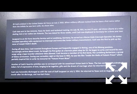Note: Any blue text you may see on this website is a hyperlink for you to click on for more information. Ellen thought you should be reminded of it. Anyway, today it was a straight drive to Nashville TN. Twice before we tried to go the Johnny Cash Museum and the Patsy Cline Museum and we wanted to make sure to see them this time. Interestingly enough, the Cline Museum sits above the Cash Museum. We believe they are owned by the same people but you have to separately pay the big bucks to visit each one.