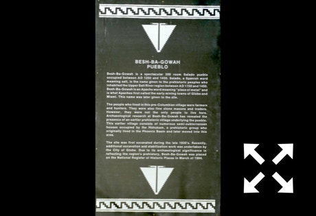 The term Besh Ba Gowah was originally given by the Apaches to the early settlement of Globe. Roughly translated, the term means “place of metal.”