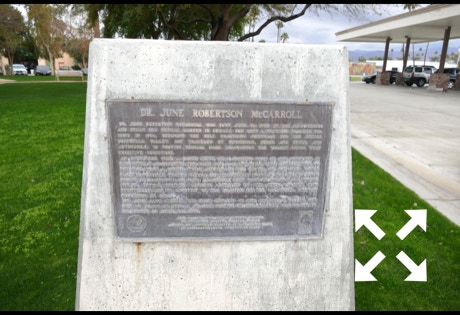 The California desert is a beautiful place. The mountains often look as if a child cut them out of paper and placed them in a mosaic art project. Today we had to take a photo of a memorial dedicated to June McCarroll who is the supposed inventor of the center line on the road. She claimed that, “In 1917 my Model T Ford and I found ourselves face to face with a truck on the paved highway. It did not take me long to choose between a sandy berth to the right and a ten-ton truck to the left! Then I had my idea of a white line painted down the center of the highways of the country as a safety measure.” Thanks June!