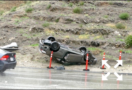 Yes, it started to rain today but it was a much needed one. However, since it doesn’t rain often, the people of Southern California aren’t used to driving in the rain. Automobile accidents seem to rise toward the start of a storm. You’ll see a couple photographed here.