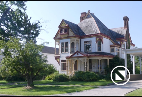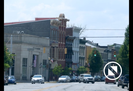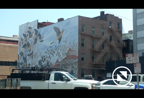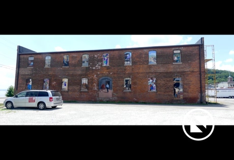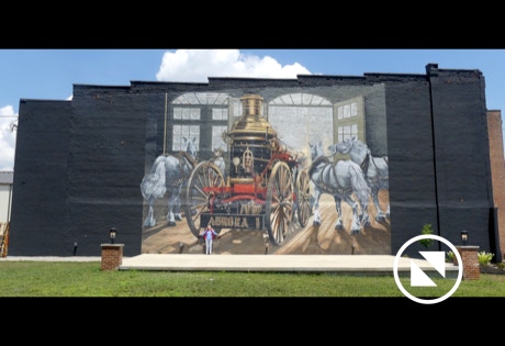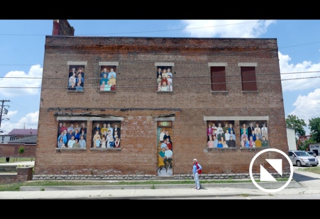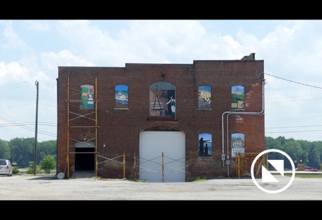 Aurora Indiana is a cute town. One of its abandoned buildings was put to interesting use with murals on its four sides. See Ellen in two of the photos? These are large. They must have used a lot of paint.