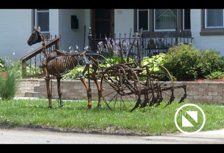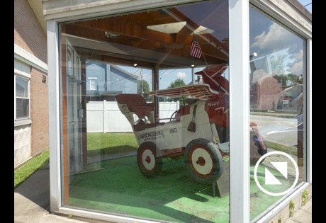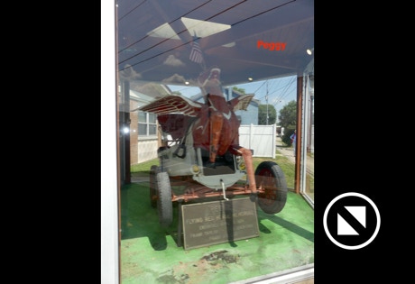 In 1934, Peggy the Flying Red Horse, was a Mobil Oil Pegasus bolted to a Ford Model T. It’s in a glass gazebo to protect it from the elements so it is hard to photograph without getting a reflection.