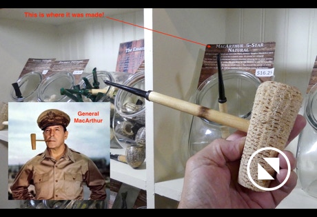 Have you ever played with a corn cob pipe? We did as children. We’d pretend to be Popeye, or Tom Sawyer and Huck Finn. How about Sherlock Holmes? Say, where did General Douglas MacArthur get that outrageous corn cob pipe? Answer: From the Missouri Meerschaum Corn Cob Pipe Museum and Retail Shoppe! The store is celebrating its 150th year in business.