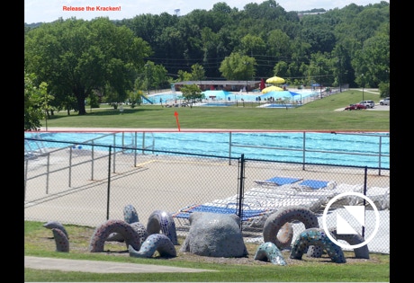 The Kraken Poolside Monster was funny and the 8-Ball Water Tower demonstrated a good sense of humor. The Trail’s End Cattle Drive Destination Monument was hard to photograph. It’s located on one of the corners of the Missouri Fair Grounds amid heavy traffic along with no parking spots nor cross-walks to get to it. We did our best to take photos from the car.