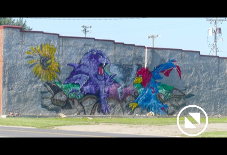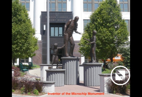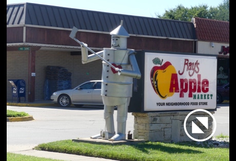 Hence, there is a statue honoring an Osage Indian. The Madonna of the Trail is placed across the street. About a block away we found a tin man with a heart. Adorable!