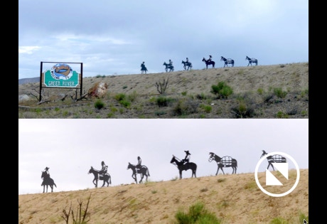 We spotted more cowboy silhouettes entering Green River UT. We always seem to stop there for gas. No, the Green River itself is actually muddy brown.