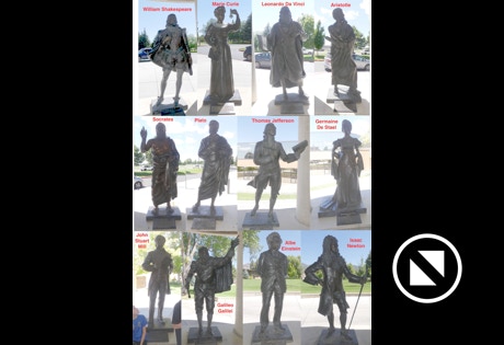 At the Southern Utah University we saw the Centurium featuring statues of twelve famous people. One of our pictures names them. Nearby is the Old Sorrel, Hero Horse Monument. The horse is credited for saving the university by delivering goods in bad weather. Lesson learned: Do something great or unusual and you get a bronze statue.