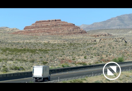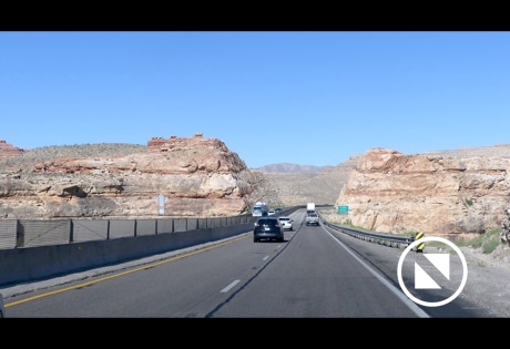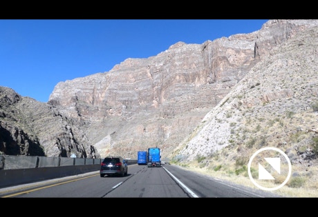 We passed through a tip of the state of Arizona to get to Nevada. The road goes through the Virgin River Gorge. Tall mountains on each side of the road make all human structures and vehicles look puny in scale. It is a bit awesome to experience.
