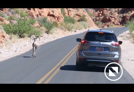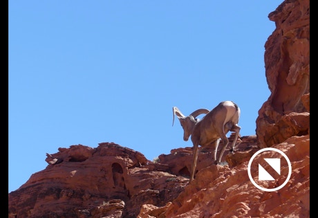 What we didn’t know is that we were about to feast our eyes on a desert beauty called the Valley of Fire State Park. We thought that is was going to be a modest desert scape. Wrong! This is a gem. See that picture of Elephant Rock! We also saw some wildlife. Sure, we got pictures of a bird and some white-tailed antelope squirrels but check out the mountain sheep climbing up and down the red rocks. One of them even got down on the road and said, “Follow me!” Okay, he didn’t really say that but he was a ham. Red was not the only color to adorn the park. Purples, whites, blues and others…most of them in layers of time.