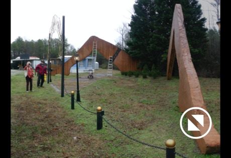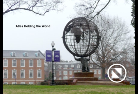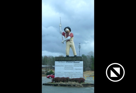 We found two statues of Daniel Boone. Ellen liked the bigger one. There’s also a statue of Atlas holding the world at High Point University. He is is pictured from behind because it was raining hard.