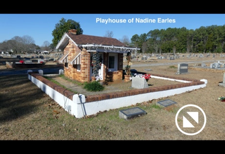 Today’s trip was a long one so we planned on visiting only three sites. The first was Little Nadine Earles’ Doll Playhouse Grave. The child wished for a doll playhouse but died before receiving it on Christmas Day. So, here it is, complete with dolls and toy furniture.