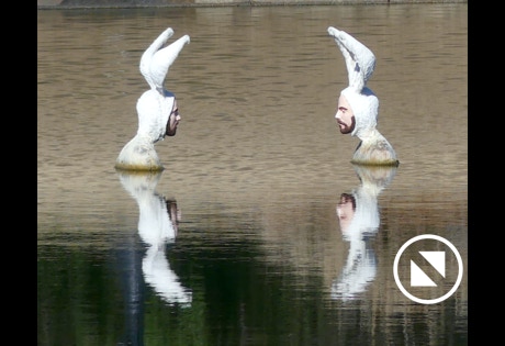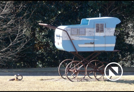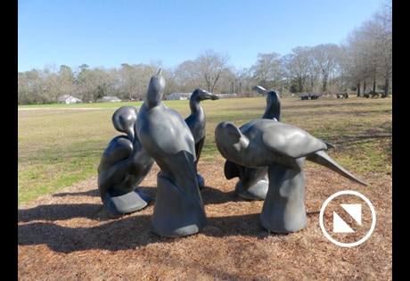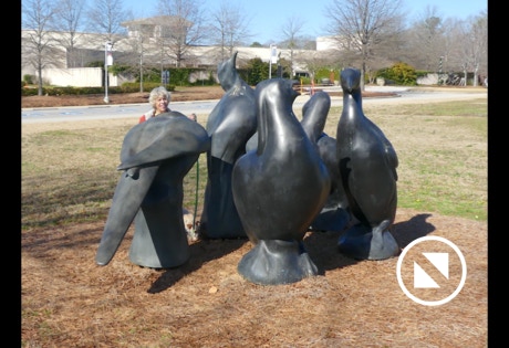 Next up was the Jule Collins Smith Museum of Fine Art at the University of Auburn in Alabama. It was closed but we were drawn there by the artwork displayed outside. The two bunny-men in water are a hoot! They are self-portraits by Alex Podesta. Apparently, this is his thing. Click here to see his website.