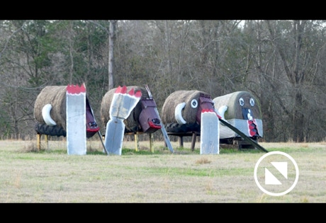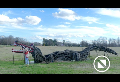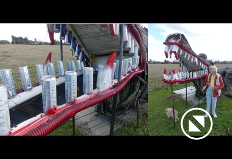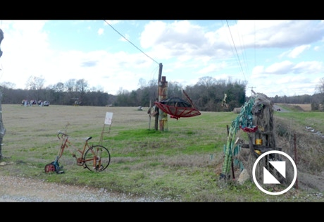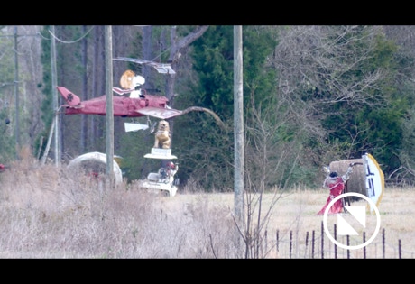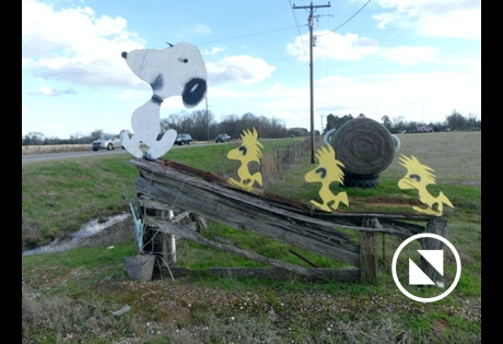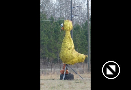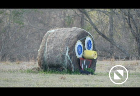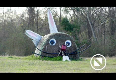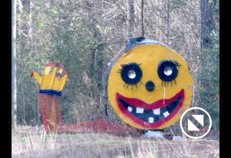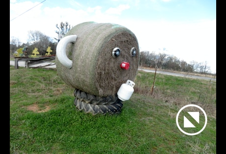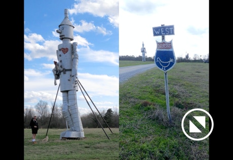 Hence, we introduce you to Jim Bird’s Hay Bale Art. His ranch is located near Demopolis AL. The tin man is 32 feet tall. Oh, on his red tin heart is written, “Jim Loves Lib.” Very sweet!