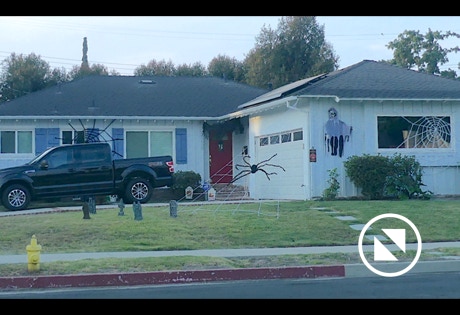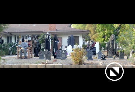 We usually drive for miles to see and take pictures of interesting stuff. Right around the corner, as we left we spotted a couple of homes with Halloween decorations. Neat! Jorge will be back to see if they light up as well in the evening darkness.