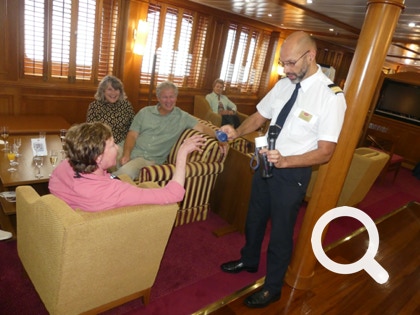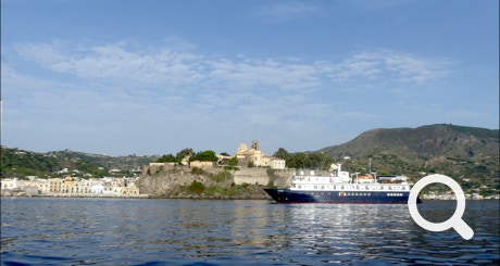 Back on the boat, we set sail for Sicily. As night fell, we went by the island of Stromboli. Its active volcano put on a fireworks show about every 15 minutes or so. Pretty impressive! Afterwards Lou Torres entertained us by singing and playing Bolivian songs and dancing. That night we went through the Straits of Messina. It was the only roly-poly parts of the voyage and most of us slept like babies.