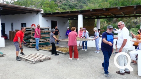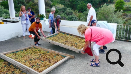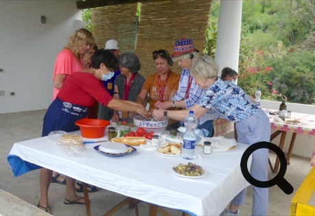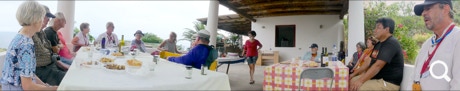 Since a windstorm seemed to be coming up, the OAT members helped the family stack the racks of capers. That included the women. We then chatted with his daughter, who has her own restaurant on the island and also teaches school. We helped her prepare a luncheon feast for us. We were supposed to help with some aspect of the wine production after lunch but there was a slight mix-up and we just enjoyed each other’s company instead.