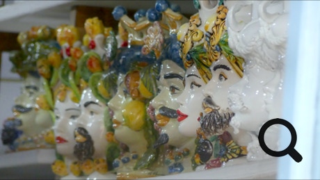 After the boat ride back to Lipari, where some of us had a nice nap, we had time to wander around. Italians in this area take siesta time seriously and practically all the stores were closed. We did find a very nice glass and ceramic gift shop. It had whole shelf of large ceramic human heads with overly-exaggerated features. Of course there is a tale: A Moorish merchant was passing through town and saw a beautiful maiden. They immediately fell in love. However, when the maiden found out that her lover had a wife and family in his homeland, she became distraught and cut off his head. The maiden knew that she could now keep him with her forever by planting the head with basil in a pot and then placing that pot on her balcony. The basil and the story thrived.