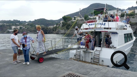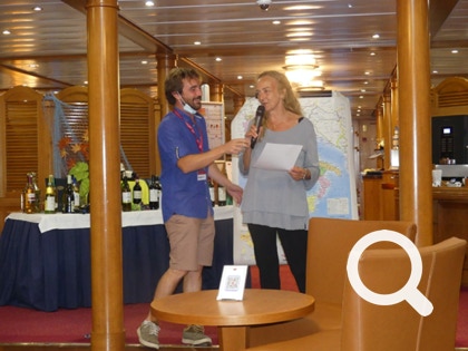 Since we were at anchor, we had to tender into the island of Lipari. After a coffee and short bathroom break, we boarded our own small boat headed for the island of Salina. We were in the Aeolian Sea and passed some volcanic islands. After arriving at Salina we enjoyed a bus ride through the mountainous countryside to a caper farm and winery owned by Rito Caravaglio. He first showed us through his winery. We then saw large racks with capers drying on the family’s large inviting patio.