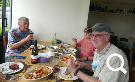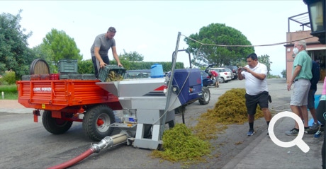 We had a pleasant lunch at nearby restaurant and watched farmers picking and loading grapes on a cart and depositing them in a chute for fermentation. A lot of hand labor is involved in farming.