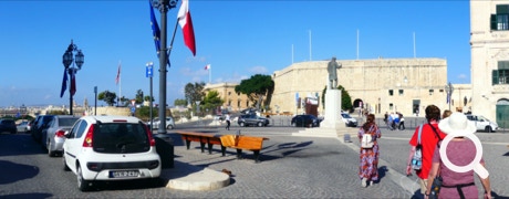 Fortunately there was an elevator to the top of the walled city. What a view of the harbor from terrace of the upper Barrakka Gardens! Valetta is a relatively modern city from the 1500’s. No Greek or Roman ruins are in sight. From our guide we learned about the role the Knights of Malta played in building the fortified walls. Later the city was built by the Knights to help care for the sick. All the walls slope inward from the ground to the top making it almost impossible to attack. We walked through the Barrakka Gardens opening into large squares surrounded by impressive buildings including the cathedral and government buildings. Malta had been an English colony for more than 199 years and gained its independence from England in 1964. There were statues celebrating independence as well as one of Queen Victoria. Yes, they drive on the wrong side of the road!