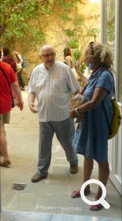 We toured the Casa Rocca Piccolo. It was built by a nobleman of the Knights of Malta in the 16th century. The current Baron from the original family sill lives in the palace. It was a combination of extremely ornate salons and smaller cozier ones. While we were resting in the courtyard garden enjoying a caged birds and a few cats, Francine stopped to speak with a humble gentleman standing by a doorway. He was the current Baron!