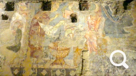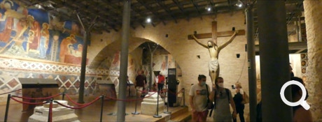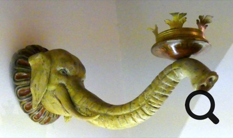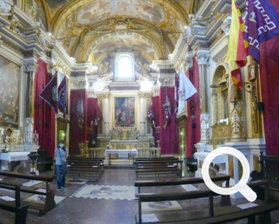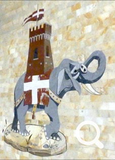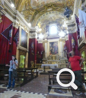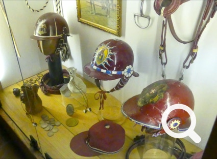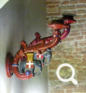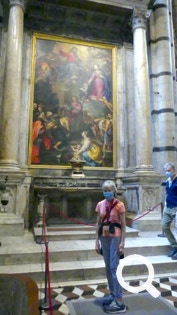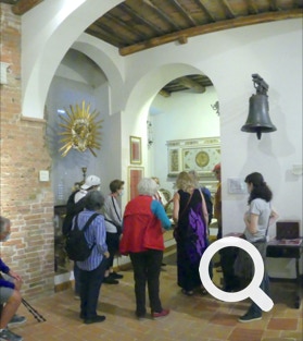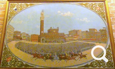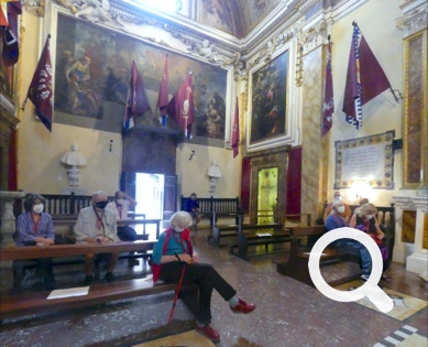 Later Francine took us to visit a contrade, one of the 17 competitive districts in Siena. Each contrade supports a church, a museum dedicated to the paleo horse race, and a meeting room. Some may have some artifacts or ruins beneath. Also each contrade has a name and an animal associated with it. Ours was Contrade de la Torre or The Tower Contrade. The animal associated with it was the elephant. We enjoyed hearing about all the ceremonies associated with the paleo and seeing the elaborate costumes both for horse and rider. The paleo is a very different kind of race and we were fascinated by it. It’s all about a horse. Each contrade representative draws a number to see whether they can participate (only ten horses can race at each event). They also draw for a jockey and a horse (neither from Siena). During the race if a jockey falls off, the horse can still win! The winning contrade then has an enormous celebratory dinner; the guest of honor is, of course, the horse!