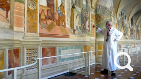 The day started with a lengthy drive through the Crete region to the Abbey of Monte Oliveto Maggiore. The Abbey was in a beautiful setting where we met Brother Joseph, our guide for the day. He had been at the Abbey for 34 years and was one of the older monks. He first took us through the church to appreciate its ornate decor.