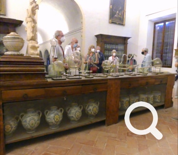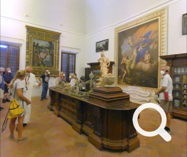 Most of the tour group went up a narrow set of stairs to see the ancient abbey library. In addition to books and paintings, there was an old chemistry room filled with pharmacy equipment.