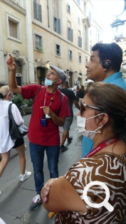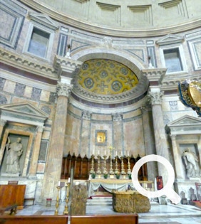 Then it was on to the Pantheon where we joined a long line of folks waiting to get in. It moved fairly quickly especially after the many in the line were informed that they could not get in without tickets. Our guides, of course, had tickets for us. After showing our vaccination cards, in we went. The Pantheon began its life as an early Roman temple but in 609 became a church. It is quite a spectacular building with the enormous Doric columns and a huge rotunda area with the largest unreinforced concrete dome in the world. There is so much to see on the walls and the rotunda is so large that it was hard to take it all in.