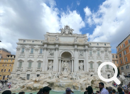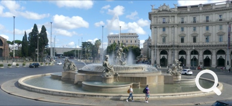 A little later, we turned the corner, and there it was — the Trevi Fountain right in front of us. It was one of those breath-taking moments. What pictures could do the fountain justice? Our pano photos come close, hopefully!