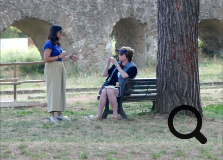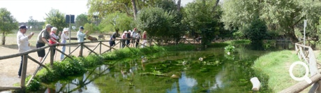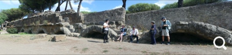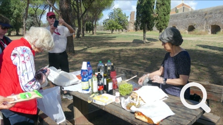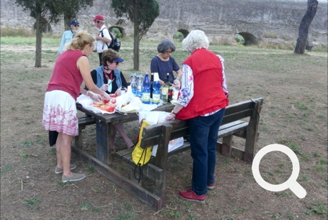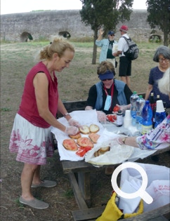 After seeing the many remains of these ancient water conduits, we walked to a park area which had a couple picnic tables, and our amazing Francine prepared a picnic feast for us. She did allow us to help with minor chores as she made the most delicious bruschetta by cutting the wonderful, ripe tomatoes in half the then rubbing and squashing them on the bread adding the oil. Delicious - Ellen wants to try it but doubts she can find the same quality of tomatoes!