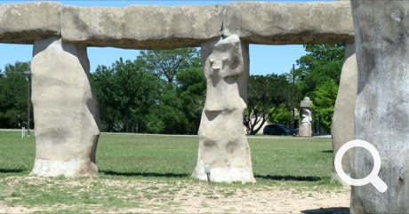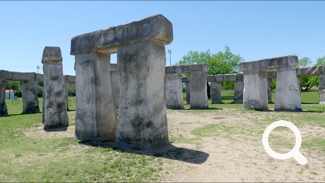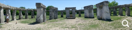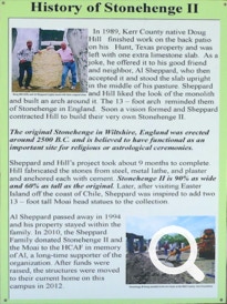 There are two replicas of the Moai statues of Easter Island and a (2/3 size) version of what Stonehenge might look like with more stones. It definitely is not an exact replica of the original. It is not oriented to the sun as the real thing. Also it was built with steel, concrete and plaster.
