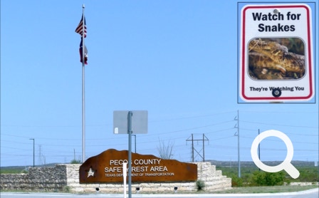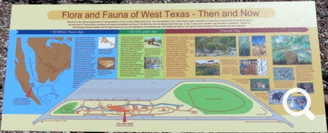 The Pecos County Safety Rest Area cost about a million dollars to build. We were told by a caretaker that there are 80 such rest stops in the state and that 80 more are being built! Along with their restrooms you’ll find a hiking nature trail and educational exhibits. Also, it is manned by someone 24/7. Wow!