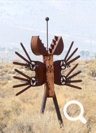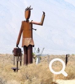 The Olancha Sculpture Garden is easy to miss if you don’t have the exact coordinates. We whizzed by it once but this time we got it. The metal sculptures are a hoot. About four minutes up the road we found an orange, pumpkin-like building with more sculptures. We saw a big, red ant but failed to get a picture as we drove by. Now who thinks of making these things and then does them?!?