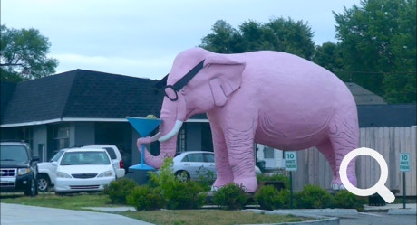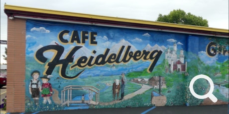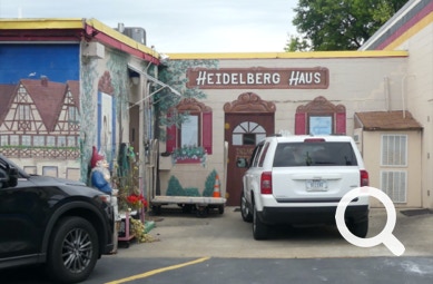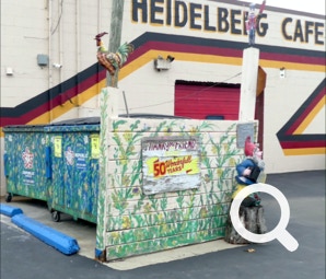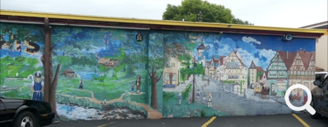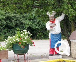 Today we have lots of ‘drive-by’ pictures of things we liked. The planned ‘drive-bys’ are on our map. Others came up along the road. We didn’t eat breakfast at the Heidelberg Haus Cafe but we enjoyed seeing their whimsical murals. You’ll see pictures of the Big Cow and the Big Rabbit. The caboose was extra as was the pink elephant drinking a martini. The Big Rooster was taller than the children’s swing set! Across the street from the Smiley Face Water Tower we stopped at a gas station for a refreshing powder break. TMI?