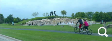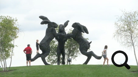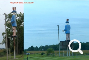 Big Uncle Sam was facing the wrong way for a good photo but we did our best from the speeding car window. The tree carved into a totem pole reminded us of the Superman Tree we passed by on day 7 of our trip. Which do you like best? Finally, we drove by the Three Large Dancing Rabbits. We didn’t expect to see all those people enjoying themselves. It was getting late so we headed toward our hotel.