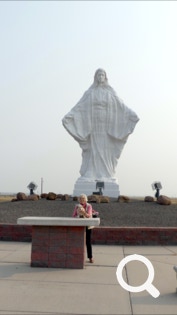 Then we took off to see a very big statue of the Virgin Mary in Pine Bluffs WY. Humorously, Ellen placed Tickle on the ‘sacrificial altar’ for a picture… ha!
