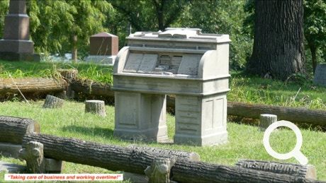 We couldn’t help ourselves when we found out that there is a tombstone shaped like a roll-top desk. We wanted to see whether the dead are busy working overtime!