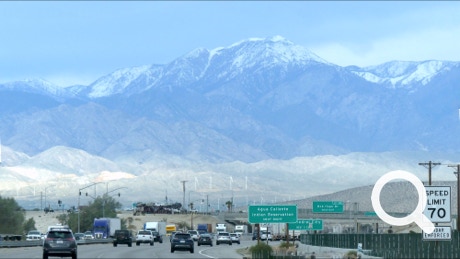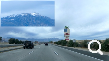 While leaving Indio CA we saw snow left over from the rare and recent Southern California storms. Seeing it from the desert below is always an interesting juxtaposition.